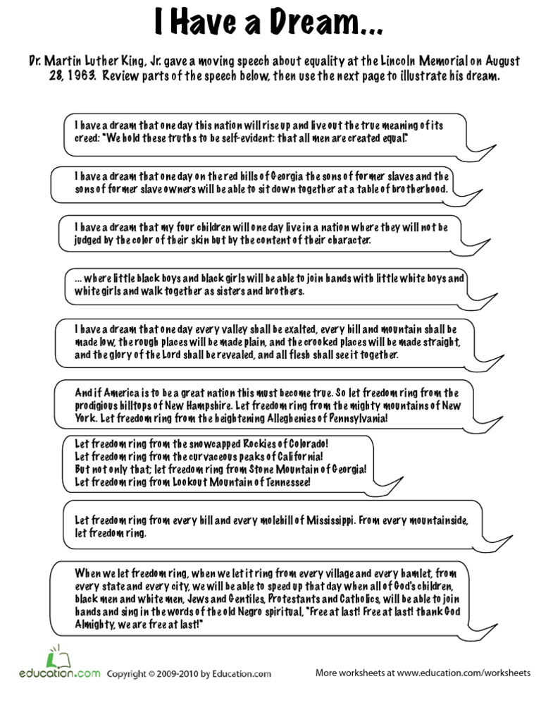 I Have A Dream Martin Luther King Worksheet